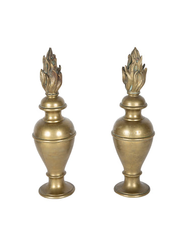 Pair of Italian bronze flame urn finials. Circa 1850.