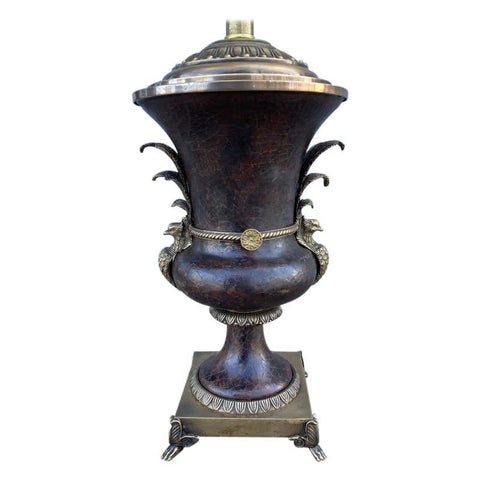 Russian Neoclassical Bronze and Leather Urn-Form Peacock Lamp
