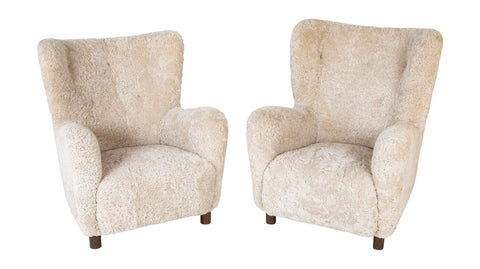 Pair of Armchairs in White Sheepskin Upholstery in the Style of Mogens Lassen
