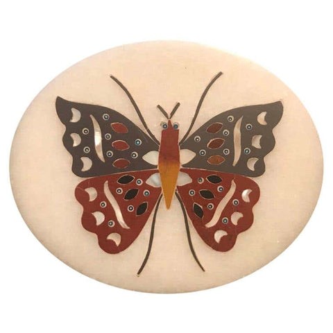Anglo Indian Pietra Dura Inlaid Marble Butterfly Paperweight